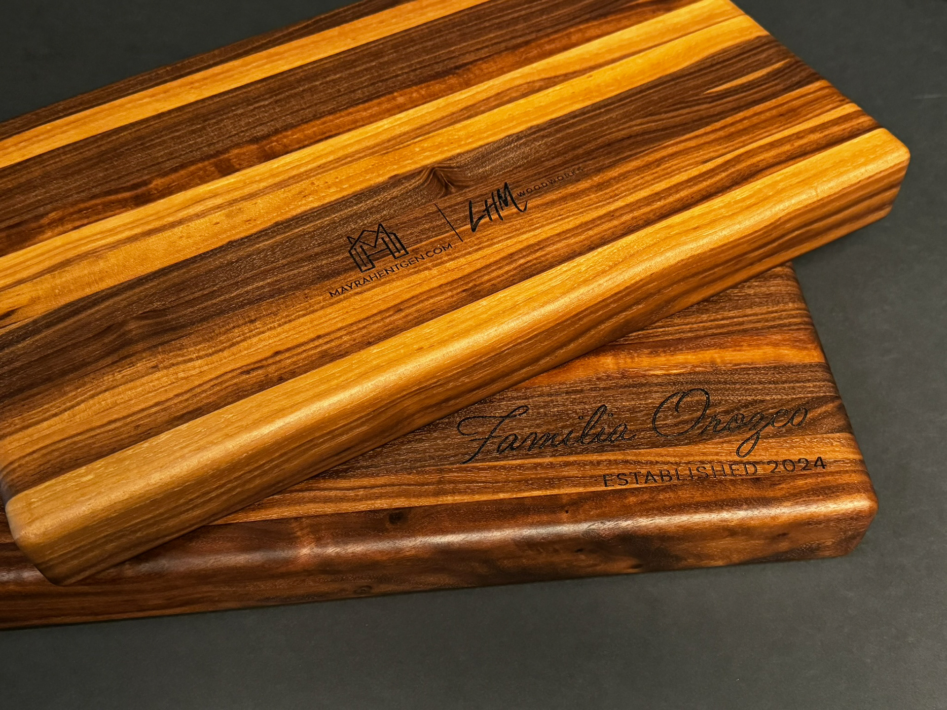 Cutting board offerings include edge and end grain cutting boards, charcuterie boards, butcher blocks, engraving and more!