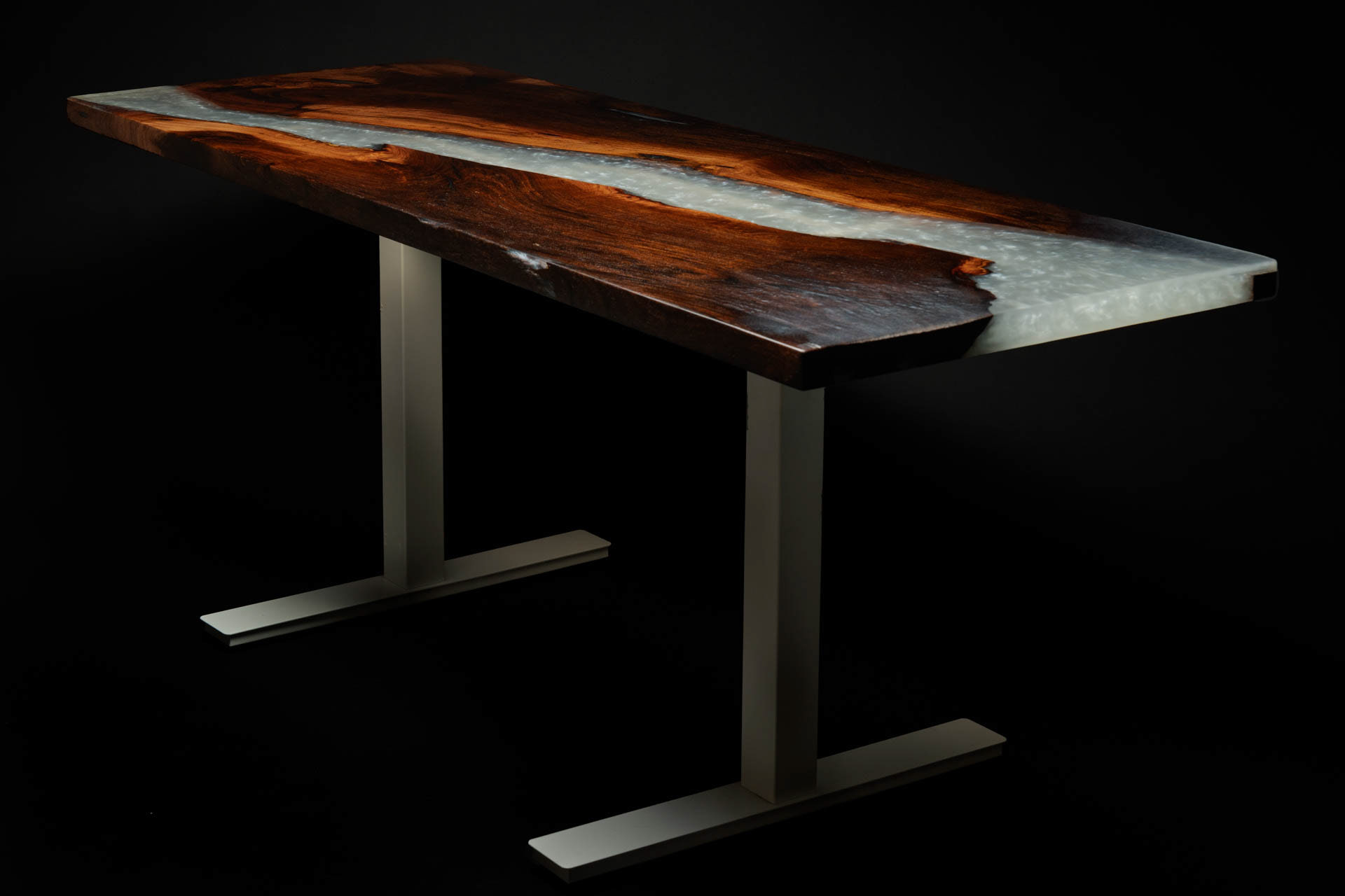 Furniture offerings include kitchen tables, desks, bookshelves and more. We can craft out of solid wood or a wood epoxy combination!